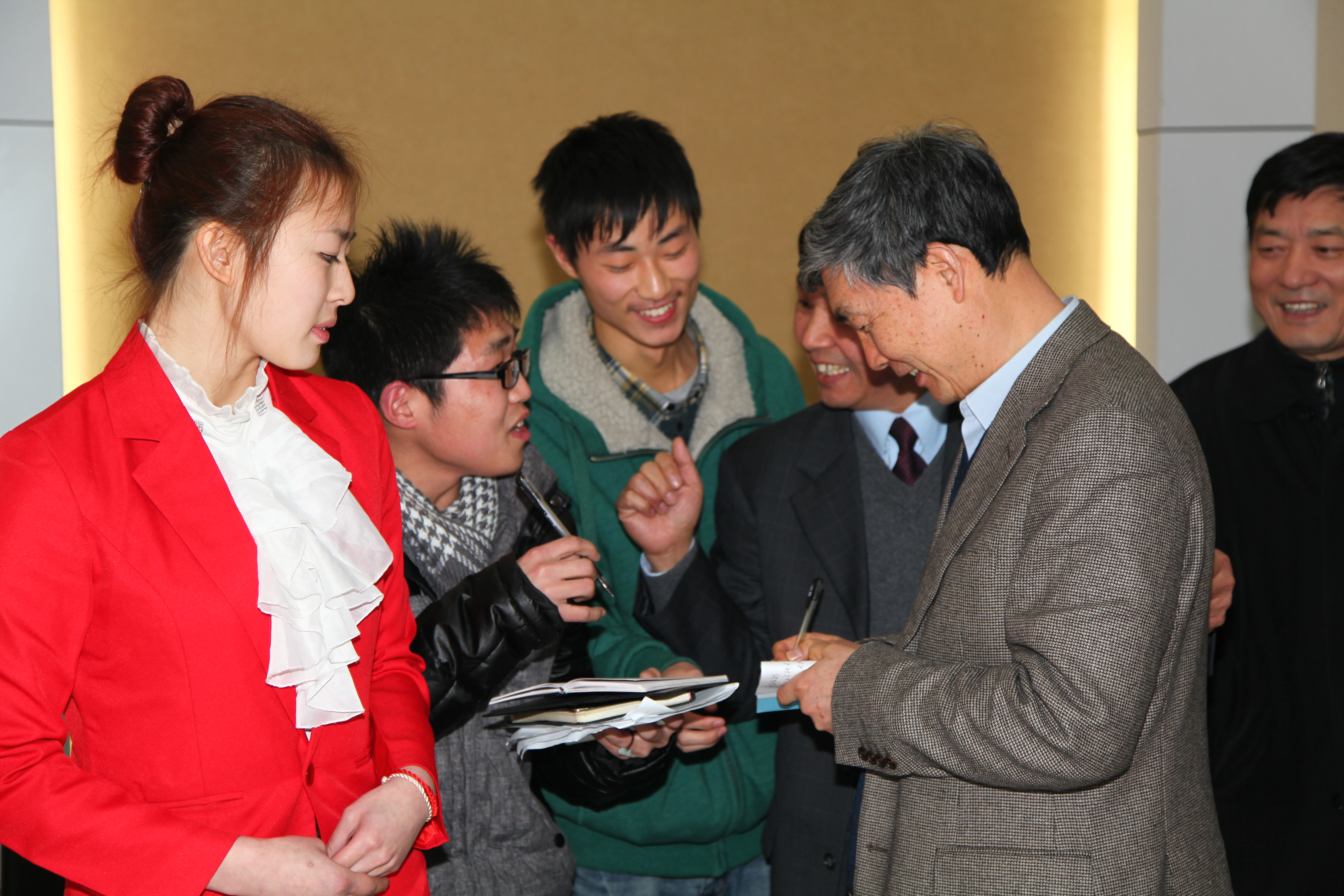 而后,师生们簇拥着根叔,纷纷要根叔签名,与根叔合影留念。“能和根叔近距离接触,我好激动啊!”管理学院的一名青年教师很高兴地说。