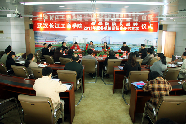 新闻中心讯(记者王茂莲徐玥)4月6日上午,我校二级学院院长受聘仪式暨2012年度各单位目标责任书签订仪式在第一会议室举行。6名博士生导师、教授受聘各二级学院院长,并与校长张金隆教授签订二级学院目标责任书。