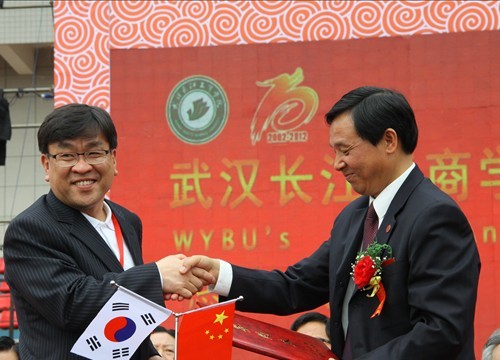 兄弟院校代表武汉科技大学校长孔建益教授发表讲话,他肯定了我校十年来的办学成果,并表示武汉科技大学与武汉长江工商学院同在黄家湖畔,在长期的合作交流中结下了深厚的情谊,希望两校在今后的岁月里,能够同心协力、并肩携手、共谋发展、共书新篇,共同铸造湖北高等教育新的辉煌,为奋力实现中部崛起做出新的更大的贡献。