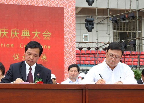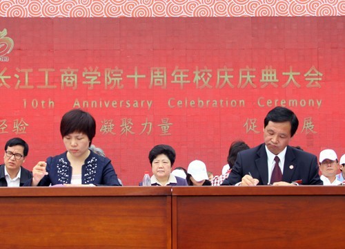 庆典大会上还进行了校地、校企和校际的合作签字仪式。分别与潜江市副市长王玉梅签订了潜江市战略合作协议,与中国南山开发集团股份有限公司、上海中泉企业发展股份有限公司、湖北劲牌有限公司、东风鸿泰汽车销售有限公司签订校企合作协议,与美国麻省大学国际学院、韩国忠北大学国际交流学院签订了校际合作协议。