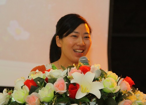 邓丽在做资教动员报告