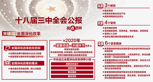 全会公报:面对新形势新任务,全面建成小康社会,进而建成富强民主文明和谐的社会主义现代化国家、实现中华民族伟大复兴的中国梦,必须在新的历史起点上全面深化改革。