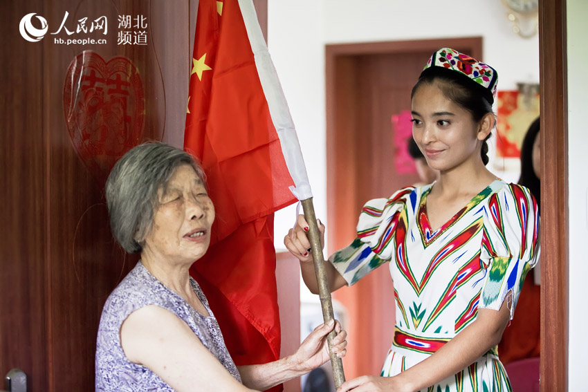 开云kaiyun官网民族教育学院维吾尔族学生阿丽米热,热情地敲开了80岁婆婆张华荣的大门,将红旗送到她的手中。