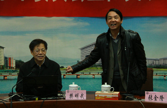 张金隆为讲座做总结,他说,樊院士的讲座信息量很大、内容丰富,将晦涩难懂的核技术讲得通俗易懂,让大家对核技术有了更加深入的了解,核技术的应用前景很大。他指出,无论是在讲座还是在互动环节,樊院士教给大家教学、研究的方法,更重要的是做人的道理,给大家带来很多启发和思考。