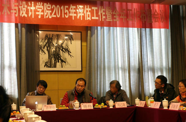 最后,许开强顾问做了题为《以迎评为契机 双引领 双提升 促进艺术与设计学院快速发展》的总结报告。他强调,艺术与设计学院要以评促建,以评促改,以评促发展,结合学院特色,引领教师成长,引领学生成才,提升教学与人才培养质量,提升学科影响力。对于2015年艺术与设计学院工作,许开强提出以下八点要求:一、建好中国文化创意产业研究中心改造方案或“创意工商 设计工坊”;二、加强实验室建设,2015年争取建成陶艺工作室、丝网印工作室、设计专业计算机机房、6-10间教师工作室、专业图书资料室、作品展示橱窗;三、建设好学院网站,建好3个以上微信平台,做好网站宣传工作;四、加强“创意工商”品牌设计创新实验班建设,2015年出成果,并汇报展出;五、为每个自然班配备一个固定教室,增加5—8个教学实践基地,积极申请省级实验教学示范中心;六、争取开好一个国际会议,筹办一个艺术与创意设计展,完成一本学院成果画册;七、推进“五个一”建设,即“一堂课”、“一本书”、“一张画”、“一个设计”、“一个课题”;八、每月开展一次学术报告,提升学生考研率和就业率。