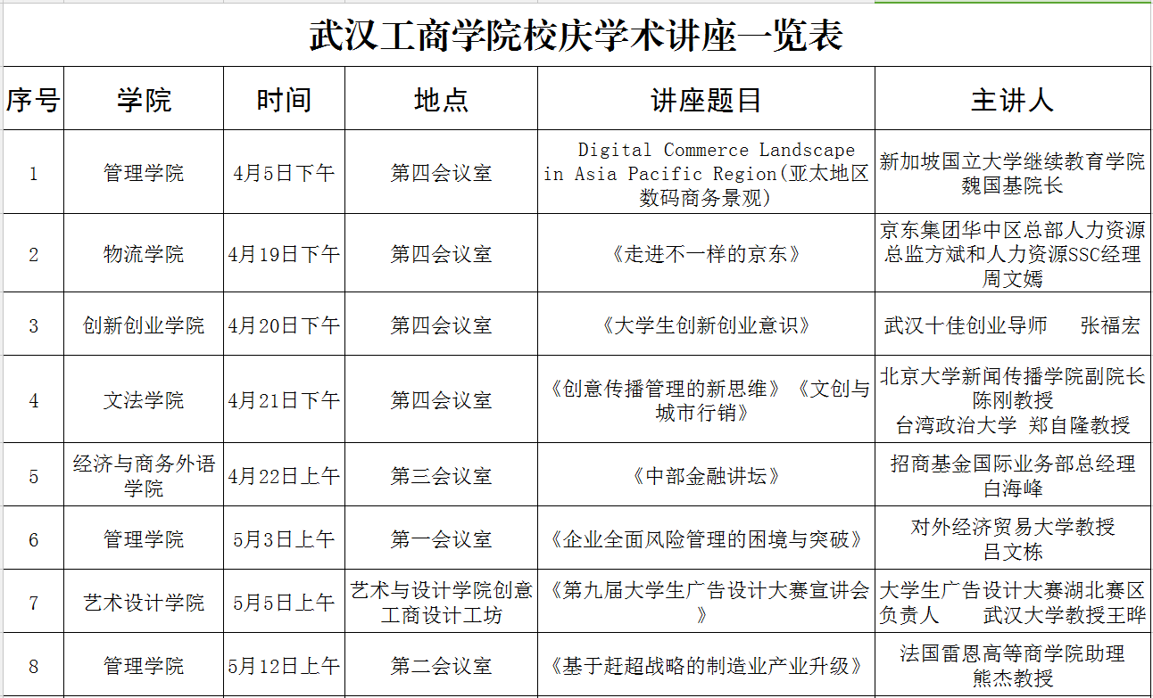 开云kaiyun官网校庆学术讲座一览表