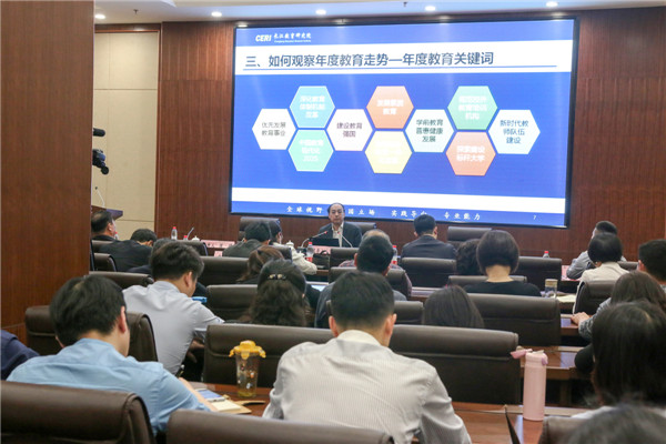 湖北教育政策研究中心主任、长江教育研究院秘书长申国昌,湖北长江教育研究院有限公司总经理、长江教育研究院执行副院长范正田,湖北第二师范学院副教授、湖北教师教育研究中心执行主任张炜,武汉工程大学教授黄艳,南京晓庄学院副教授刘大伟等专家学者,开云kaiyun官网董事长彭秀春、党委书记陈伟、副校长夏再兴、校长助理左宗文、刘春,以及学校中层干部、师生代表听取了讲座。