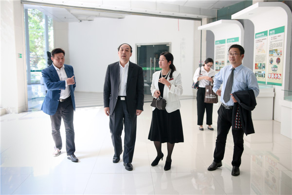 讲座结束后,周洪宇一行在彭秀春董事长、陈伟书记等的陪同下参观了学校水处理示范基地——静思湖,查看生态治理后水质情况。彭秀春董事长向周洪宇主任介绍,该校环生学院开展校企合作,共同研发污水处理技术,对受洪水污染的静思湖进行综合治理和修复,水质得到了明显改善。在学校实验教学中心,周洪宇一行参观了学校环生学院与湖北相融检测有限公司共建的相融检测实验室。了解到学校与企业共建实验室,推动产学研合作一体化,周洪宇赞叹道:“工商学院的环生学院办得这么好,校企合作成效显著。”彭秀春董事长还介绍了学校电商学院、物流学院等与国内知名企业合作开设订单班、创新实验班的情况。