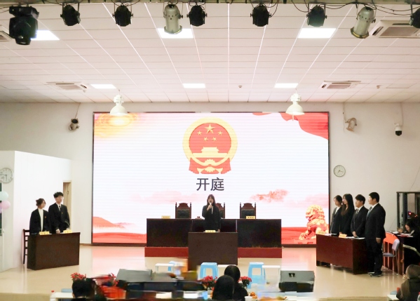 原来这是学校弘博法学会主办的模拟法庭活动,本次模拟法庭的主题是抵制人口拐卖,该案件以真实案例为原型改编,通过情景剧场景重现。文法学院法学系主任张威,弘博法学会指导老师李巧玲,法学专业教师黄芷薇、余朗以及弘博法学会成员、文法学院法学专业学生等参加了此次活动。