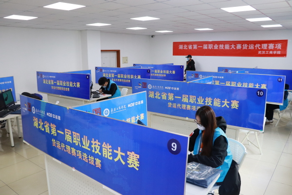 图为湖北省第一届职业技能大赛货运代理赛项选拔赛在学校开赛 摄影:胡毅