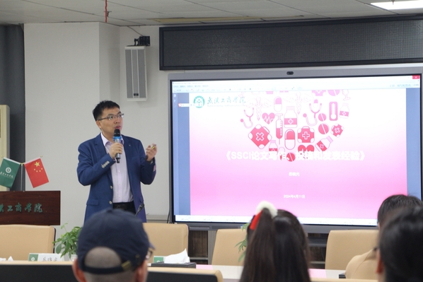 新闻中心讯(记者 雷雯珊)4月11日下午,SSCI期刊编委、全球高被引学者、SSCI和A&HCI论文高产作者、审稿专家岳晓光教授应邀来校,在综合楼920会议室为学校经济与商务外语学院的教师们做主题为《SSCI论文写作、投稿和发表经验》的讲座。讲座由学校经济与商务外语学院主办。
