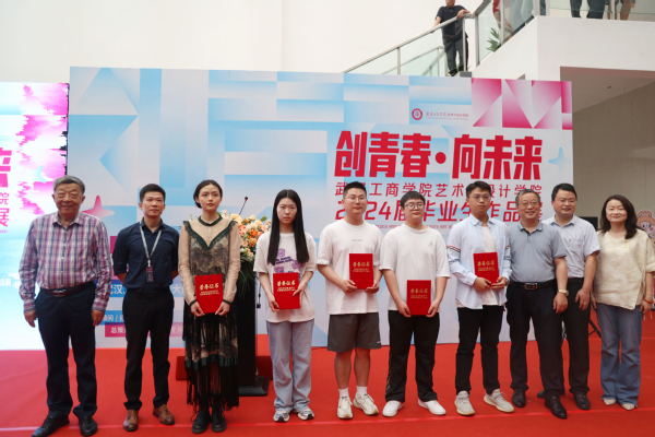 “希望同学们能够更加积极地投入到创意设计的研究和实践中,不断深化对此领域的认识和理解,进一步完善自身的设计素养和能力,并将所学所得转化为实际的创造成果,为社会创造更多更好的价值。”刘生元书记深切寄语在场毕业生。之后,刘生元书记宣布2024届毕业设计展开幕。