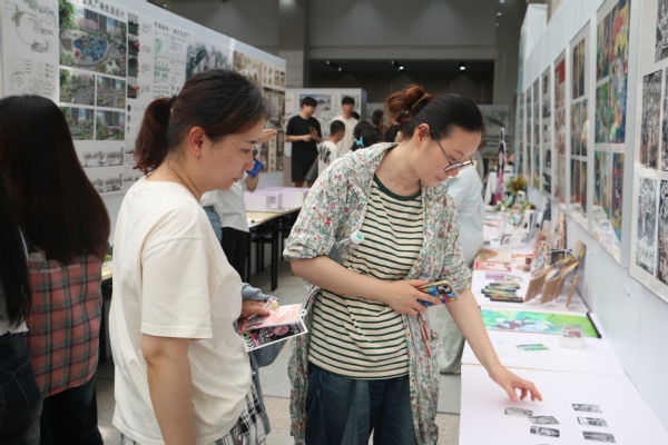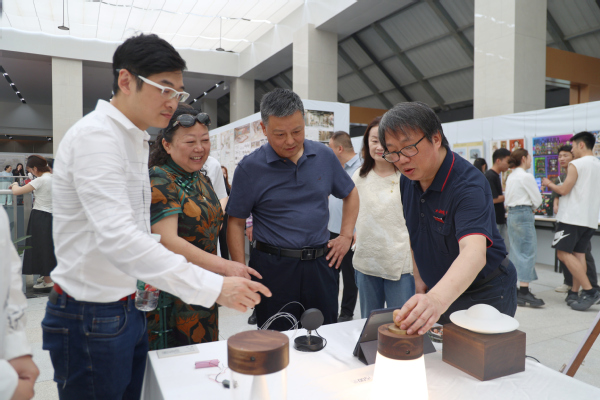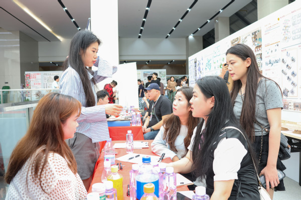 在展览现场,毕业生们向师生及企业代表们介绍自己的作品,分享设计灵感和创作过程。
