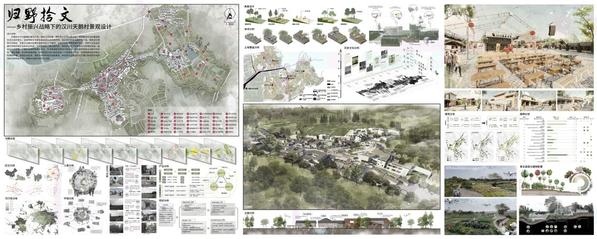 图为《“归野拾文” ——乡村振兴战略下的汉川天鹅村景观设计》系列作品 作者:胡思睿 苏哲 余宏博