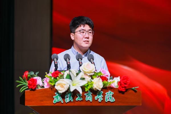 图为经济与商务外语学院2022级学生齐悦作为学生代表发言
