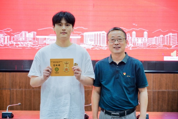 随后,左宗文副校长为第一期结业学员一一颁发了结业证书,第一期的两名学员也将象征着“青马工程”班学员培养之路的传承与延续的旗帜正式交接给了第二期的学员代表。