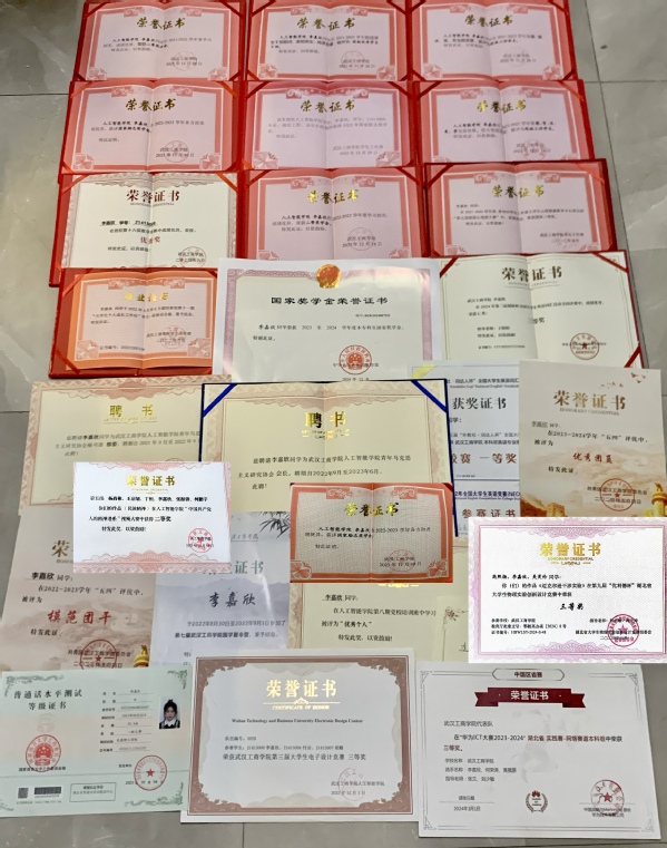 【人物简介】李嘉欣,中共党员,学校人工智能学院通信工程专业2021级学生,2023-2024学年度国家奖学金获得者,连续三年学习成绩专业排名第一,两次获得国家励志奖学金;担任班级心理委员、院青年马克思主义协会会长等职务,曾获校级三好学生、优秀学生干部、模范团干、优秀团员等荣誉称号;积极参加各类学科竞赛,曾获第九届“优利德杯”湖北省大学生物理实验创新设计竞赛三等奖、华为ICT大赛湖北省实践赛网络赛道本科组三等奖、第三届“创研杯”全国大学生英语词汇活动三等奖,并热心参与支教志愿服务活动,其参与的“三下乡”支教和志愿服务团队获评为省级优秀团队。