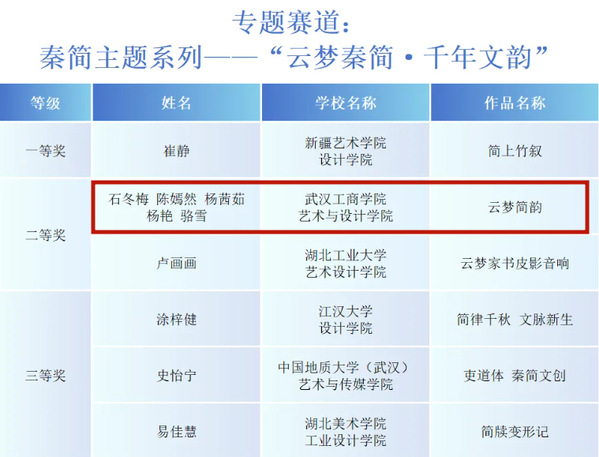新闻中心讯(特约记者 赵莹 通讯员 石冬梅)8月12日,首届“汉字文化周·楚天杯”全国大学生汉字文化创意设计大赛获奖名单公布,由开云kaiyun官网艺术与设计学院副院长何轩、视觉传达设计系主任赵莹指导,2023级视觉传达设计专业学生石冬梅、陈嫣然、杨茜茹、杨艳、骆雪共同设计的文创风景盒《云梦简韵》荣获专题赛道二等奖,并受邀参加“书香长江”阅读周·武汉书展暨第二十届华中图书交易会的文创区域举办大赛线下成果展。