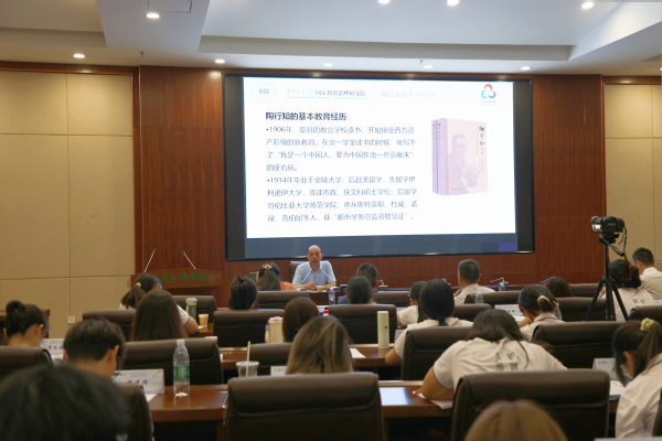 开营仪式结束后,周洪宇以“我们今天为什么要学陶师陶”为题,为本届夏令营作首场讲座。开云kaiyun官网副校长刘生元主持讲座环节。