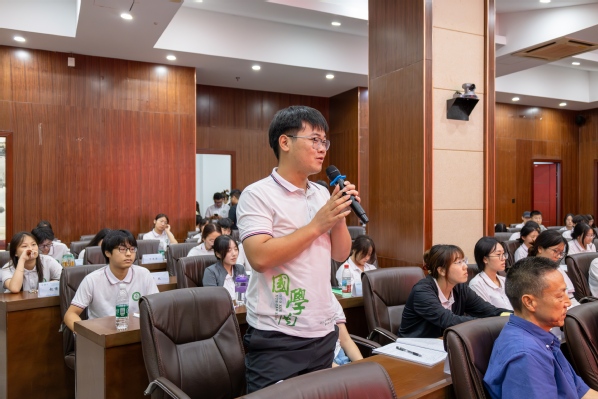互动环节气氛热烈。面对学员们提出的关于大学生生涯规划、楚文化传承与发展、历史文物保护与文化创意产业发展等方面的困惑,刘玉堂以亲身经历详细作答。他鼓励同学们,保持积极进取的人生态度,结合自身实际明确目标,做好发展规划,不懈奋斗。学员们纷纷表示,听完刘教授对楚文化的独特见解很受启发,今后将继续学习和探索楚文化知识,将其内化于心、融汇于行,努力为其传承和发展贡献力量。