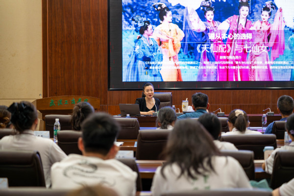 除经典剧目外,程丞还带来了湖北省戏曲艺术剧院“守正创新”的原创作品《女国医》。她采用“唱讲结合”的方式,让学员沉浸式感受剧目魅力,同时准备了丰富的戏曲视频,带领大家深入赏析。她提到,该剧女主角义妁源自真实史料记载,是黄梅戏舞台上少见的、闪耀着理想主义光芒、专业精神与人性温度的女性形象,为传统文化注入了崭新的时代精神。