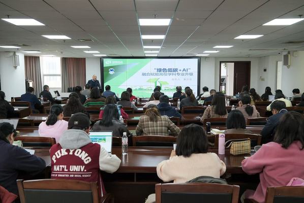 讲座中,董庆喜围绕国内外双碳政策与发展趋势、双碳目标对高等教育的影响以及相关产业与人才需求等方面展开阐述。他指出,随着全国碳市场持续扩容、零碳园区加快建设及CCUS等低碳技术不断突破,双碳领域已成为就业新蓝海,预计相关产业人才缺口将超过百万人。为应对这一挑战,高校必须打破传统学科壁垒,推动能源、环境、经济、管理等学科交叉融合,积极布局“双碳”相关新兴专业与微专业,加快培养具备扎实理论基础与前沿技术视野的应用型人才。