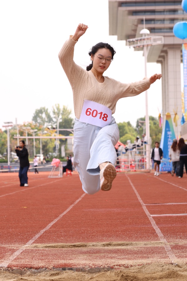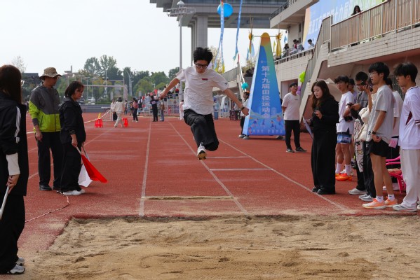国际教育学院的学生郑余豪在男子跳远比赛中跳出5.48米的出色成绩,将第一名收入囊中,虽然他其中一跳因违规被判无效,却依旧以平常心面对。他的赛后感悟道出了众多运动员的心声:“我认为全力以赴的比赛过程比结果更有分量,无论输赢,这段经历都弥足珍贵!”