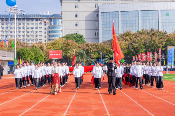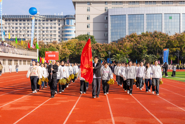 伴随着铿锵有力的《运动员进行曲》,国旗队以及来自各二级学院的师生代表方队步伐整齐、气宇轩昂,依次入场接受主席台检阅。各方队结合专业特色,通过爵士舞、啦啦操、古典舞、舞蹈串烧等创意迭出、活力迸发的表演,充分展现了武工商学子昂扬向上的精神风貌与蓬勃朝气,赢得现场师生阵阵掌声。