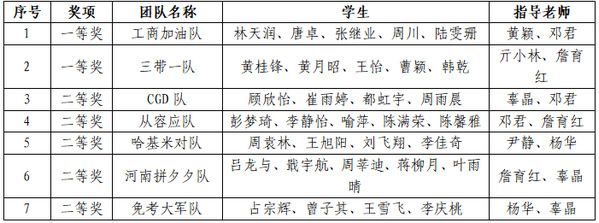 图为创新创业竞赛营销模拟决策赛道获奖情况一览表
