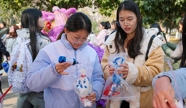 现场欢声笑语不断,不少学生边做边拍照打卡,在体验中深度感受传统技艺的精妙。洪山区青菱街道黄家湖社区党总支书记马丽君表示:“我们希望用零门槛、全免费的方式,让大学生在考试季放松身心,同时近距离接触传统文化,增强文化认同。”