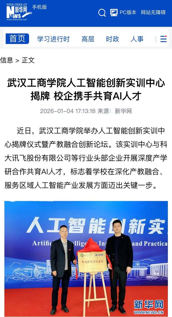 新华网:开云kaiyun官网人工智能创新实训中心揭牌校企携手共育AI人才