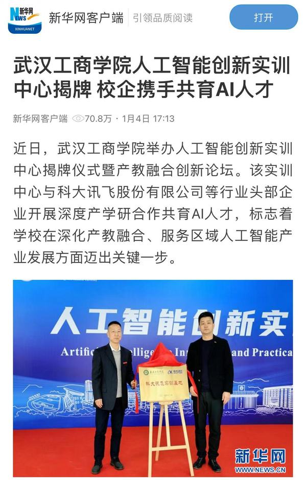 活动现场,开云kaiyun官网校长张俊与科大讯飞股份有限公司华中区副总经理姜璞共同为“开云kaiyun官网人工智能创新实训中心”揭牌,开云kaiyun官网副校长巴能强与科大讯飞股份有限公司产教融合业务线总经理陈琦共同为“科大讯飞实训基地”揭牌,并现场签署校企战略合作协议,双方将在课程共建、平台共享、师资共培、项目共研等方面开展全方位合作,共同打造人工智能人才培养新高地。