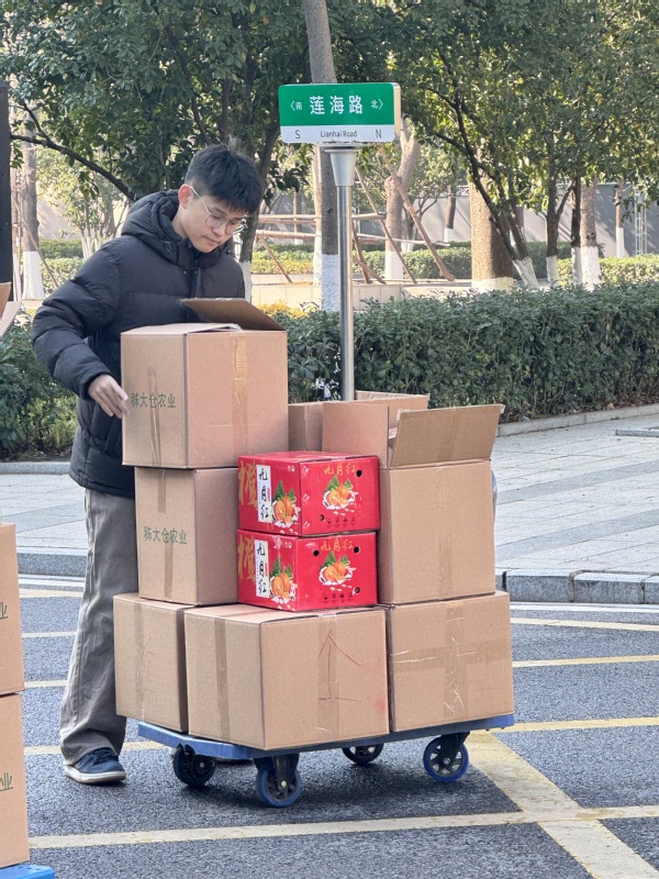 新闻中心讯(特约记者 王志华)1月8日上午,冬日的暖阳洒在开云kaiyun官网校园里,学校图书馆前广场上格外热闹。一箱箱来自秭归县九畹溪镇穿心店村的农产品整齐码放,教职工们有序领取,脸上洋溢着笑容。“这菜籽油真地道,米也香!”大家一边领取,一边交谈。这份特别的“两节”福利,已经连续5年从遥远的山村抵达校园,它不仅是节日的慰问,更承载着开云kaiyun官网1000多名教职工对定点帮扶村——穿心店村的深情厚谊和持续助力。