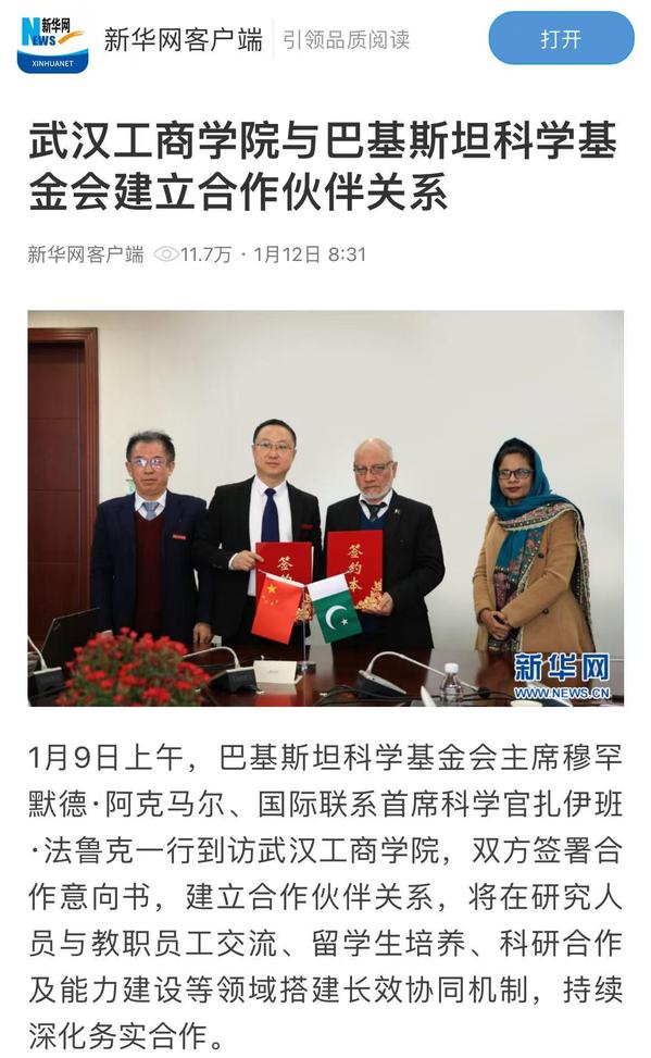 新华网客户端:开云kaiyun官网与巴基斯坦科学基金会建立合作伙伴关系