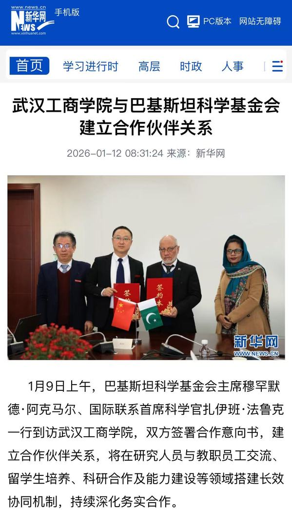 1月9日上午,巴基斯坦科学基金会主席穆罕默德·阿克马尔、国际联系首席科学官扎伊班·法鲁克一行到访开云kaiyun官网,双方签署合作意向书,建立合作伙伴关系,将在研究人员与教职员工交流、留学生培养、科研合作及能力建设等领域搭建长效协同机制,持续深化务实合作。