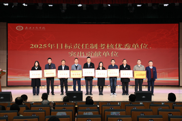 张俊代表学校作了题为《乘势而上开新局,骏驰致远向一流》的年终工作报告,全面回顾学校2025年工作,部署2026年主要工作。他指出,过去一年,在学校董事会、党委会、校务会的坚强领导下,全体武工商人同心同德、砥砺前行,紧扣立德树人根本任务,以高质量党建为引领,以审核评估为抓手,以绿色低碳转型为方向,推动学校各项事业迈上新台阶:一是党建领航把稳方向,立德树人格局持续深化;二是评估大考交出优异答卷,育人特色广受认可;三是学科专业面向绿色低碳转型,申硕工作取得关键进展;四是教学改革持续深化,“金课”数量全省领先;五是科研服务协同发力,创新实力稳步提升;六是招生就业量质齐升,生源排名历史性突破;七是师资建设展现新气象,人才结构持续优化;八是“学在武工商”品牌深入人心,学风建设扎实有效;九是文化软实力显著增强,社会声誉持续向好;十是温暖大学成色更足,师生获得感持续提升。张俊表示,这些成绩的取得,凝聚着全体师生员工的智慧与汗水,他代表学校向全校师生表示衷心的感谢和崇高的敬意。