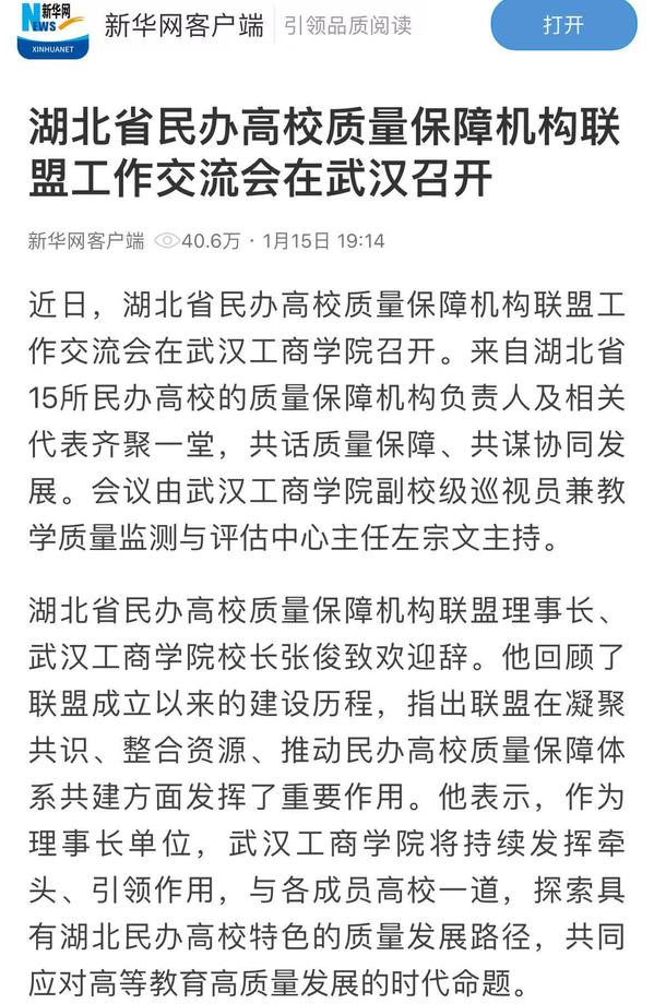 新华网客户端:湖北省民办高校质量保障机构联盟工作交流会在武汉召开