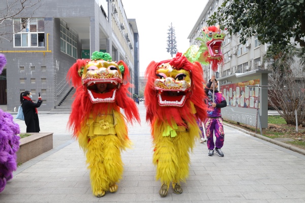 图为龙狮闹元宵巡游校园活动现场 摄影:芮雨欣