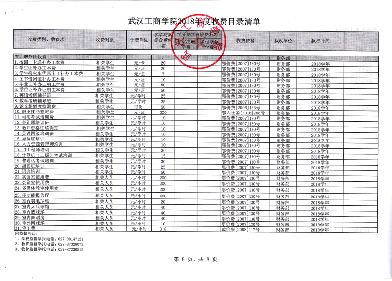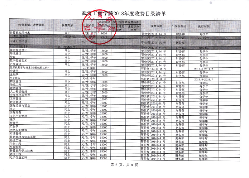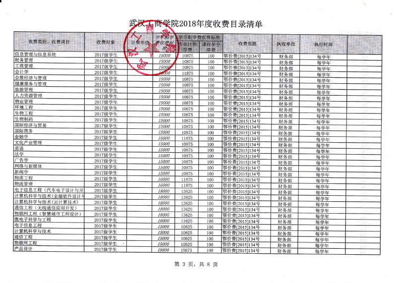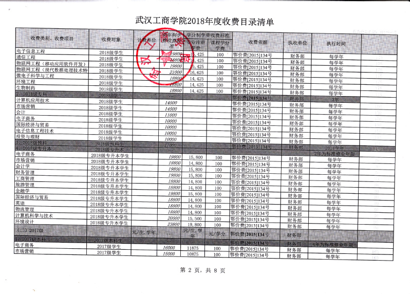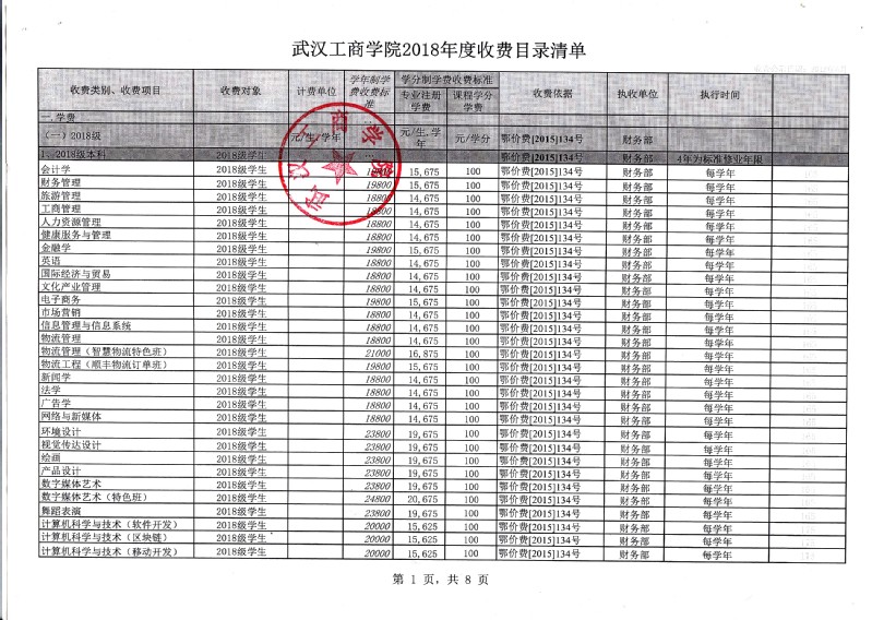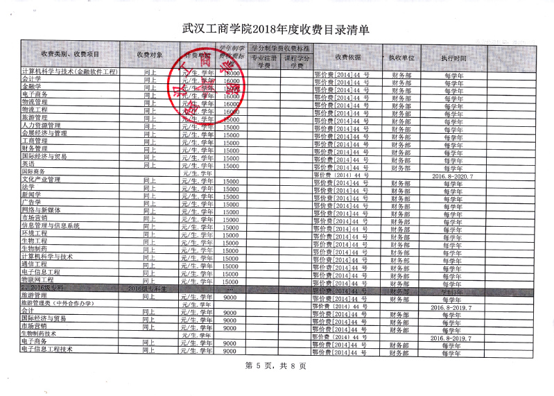 根据省教育厅、省物价局《关于我省民办普通高等学校学费标准备案及有关问题的通知》(鄂价费(2016)63号文)的文件精神,经向湖北省教育厅、湖北省物价局备案,我校2018年收费目录清单公布如下: