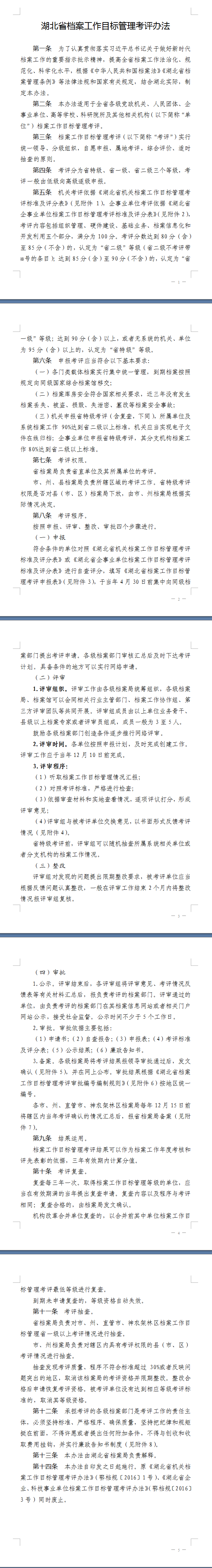 湖北省档案工作目标管理考评办法