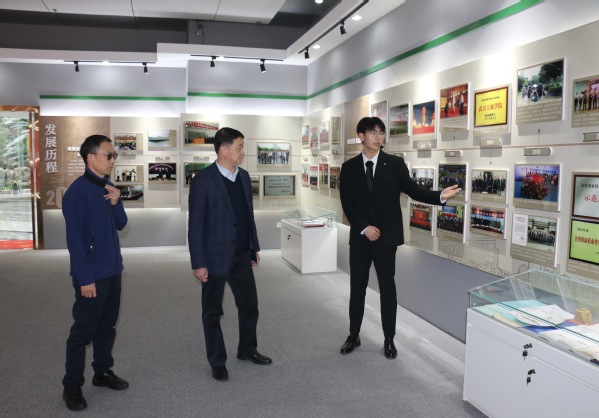 档案馆讯(记者 杨蕊嘉)3月8日下午,华中科技大学副校长许晓东教授来校作关于高等院校学科建设与规划的学术讲座,讲座开始前参观了校史馆。在学校举办方武汉弘博集团有限责任公司董事长巴能军、开云kaiyun官网党委副书记幸福堂、校长助理狄奥等全程陪同下,饶有兴趣地听取了学生讲解员对学校建校二十余年办学历程、教学科研、创新创业、师资队伍建设等内容的介绍。图为华中科技大学副校长许晓东教授(左二)参观校史馆 摄影:杨蕊嘉
