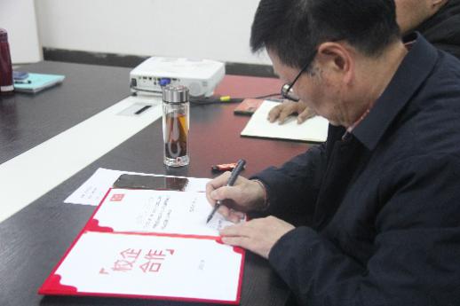 会议第二项,双方领导进行签约,王学东院长在签约本上签字,并为校企合作人才培养基地授牌揭幕并进行合影留念。