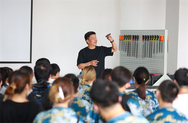“钳工既是技术活也是体力活,需要通过锉刀、钢锯等工具,手工将一个铁块打磨制作成一个锤头,一上午下来,很多同学的手上都磨出了水泡,但最终看到自己第一次在工厂里做出的成品,大家都很有成就感,对接下来的实训项目也充满了期待”,金浓同学所在的班级当天上午进行了钳工实训,参加完实训他深有感触地说。