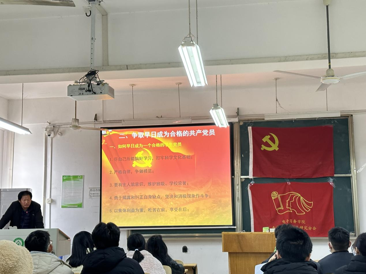 (图为杨睿书记正在讲解正确的入党动机)