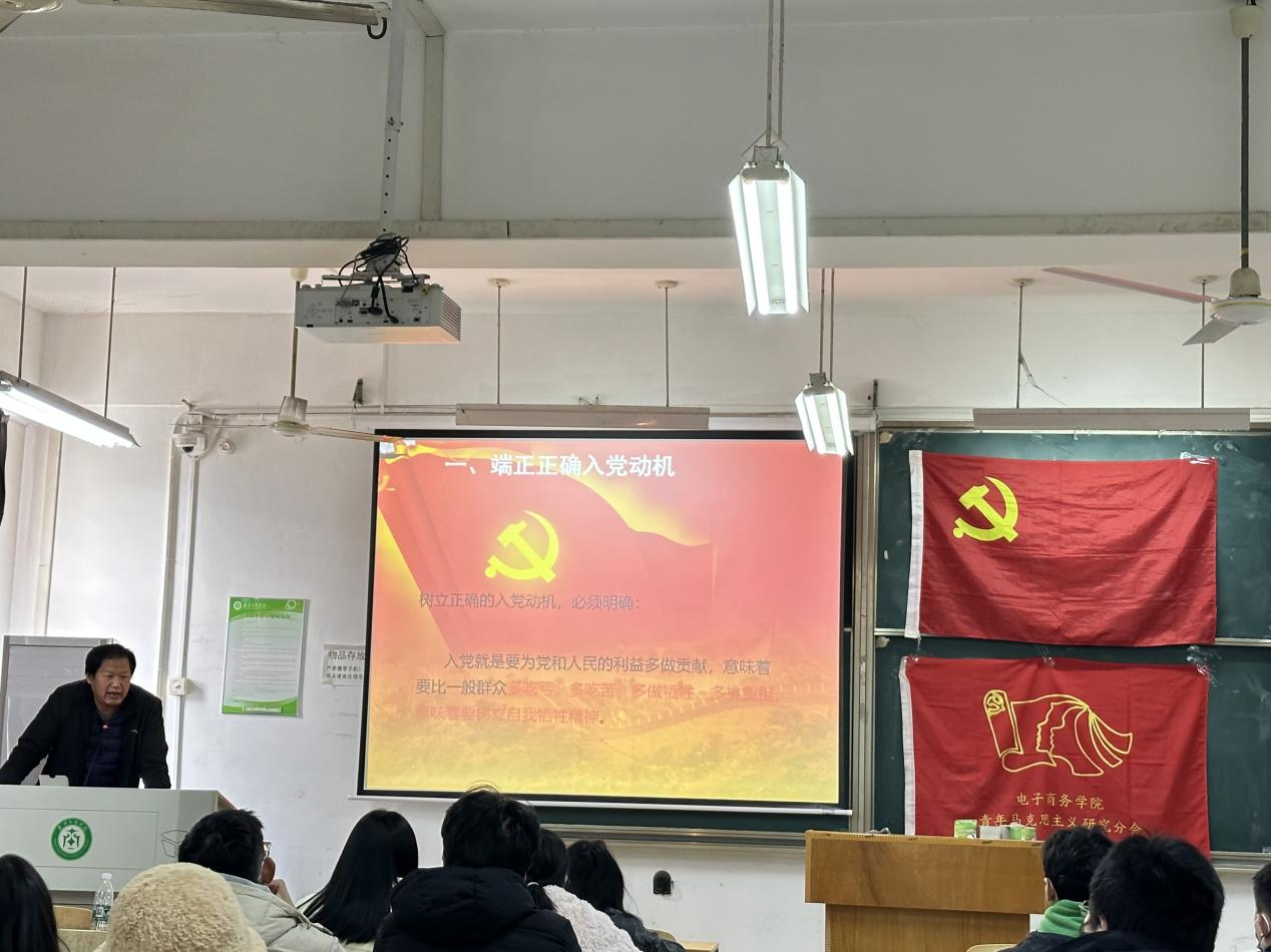 电子商务学院青年马克思研究分会讯(记者:贺欣妤,摄影:贺欣妤) 12月1日中午12:30,电子商务学院在线上开展第十五期党校,学院党总书记杨睿老师主讲。