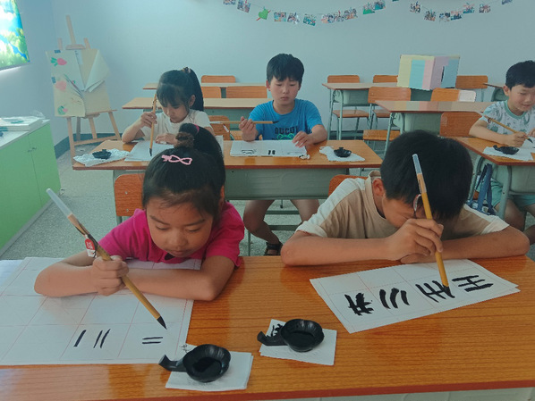 上午八点半,墨香渐起。志愿者以一横一竖见真功的教学理念,指导孩子们从最基础的执笔姿势学起,全神贯注体验传统书法的魅力与专注的乐趣。