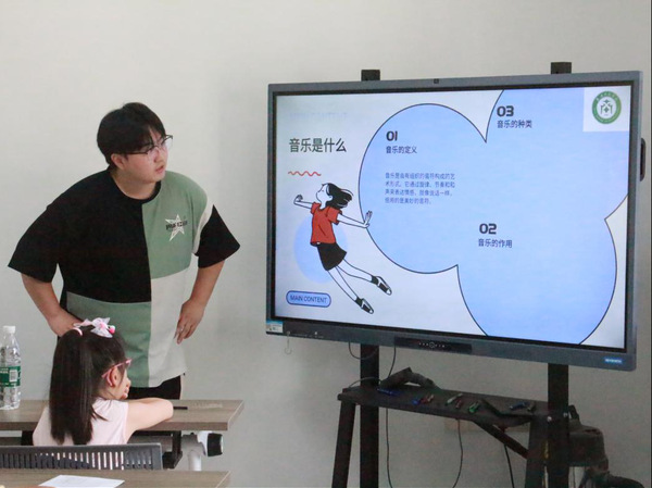在趣味数学课堂上,志愿者巧妙利用生活实例与趣味实验,将抽象的数学原理化为孩子们手中的趣味卡片与数字游戏,既锻炼了孩子们的思维能力又锻炼了他们的记忆力;音乐教室里,简单的音符在稚嫩指尖流淌,童声合唱《让我们荡起双桨》的旋律悠扬,点亮了孩子们眼中的星光。