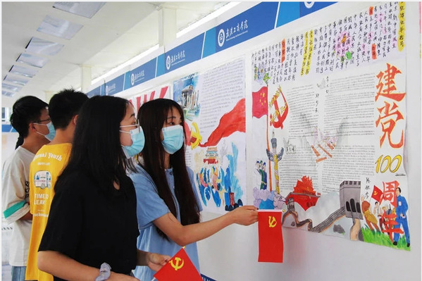 (通讯员 李枥霖)7月1日下午,由思政课部党支部和思政课部举办的七一礼赞画展活动在艺术楼中庭拉开序幕。2021年恰逢中国共产党建党100周年,为了铭记党的历史,讴歌党的光辉历程,发扬党的优良传统,让“四史”教育走心走实,根据习近平同志在“党史学习教育动员大会”上的讲话精神,思政课部党支部与思政课部在本学期依托两门课程《中国近现代史纲要》和《毛泽东思想和中国特色社会主义理论体系概论》举办特色实践教学活动。