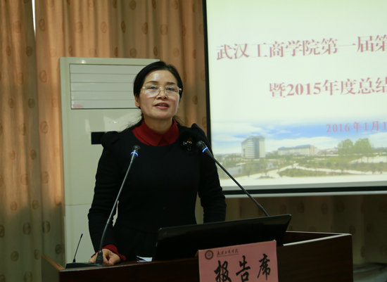 校工会常务副主席苏红做了主题为《同心合力迎评估 群策群力促转型》的工作报告,报告回顾了校工会2015年的主要工作,展望了2016年的工作。她说,过去一年,校工会在学校党委和上级工会组织的领导下,在校行政的大力支持下,在推进学校民主政治建设、促进教师队伍发展、引领校园文化、关注民生、加强自身建设等方面都取得了一定的成绩,比如扎实做好“送温暖”工程、及时解决综合楼饮用水问题、协助解决教职工购房住房问题、组织教职工参加省教育工会的暑期疗休养活动等。工会工作在取得成绩的同时也存在着一些问题,比如工会的组织机制还不够健全,教职工参与民主管理和监督的机制不够完善,反映群众呼声和意愿的渠道不够畅通等。2016年,校工会将紧紧围绕迎评促建中心工作,服务大局,认真做好八个方面的工作:一是继续开展教职工喜闻乐见的文体娱乐活动;二是进一步理顺各分工会的关系,发挥学院二级工会作用;三是围绕学校中心工作,传达学校主要工作,主动深入基层,处理好教职员工关心的热点、难点问题;四是努力加强师德师风建设,开展“三育人”评选活动;五是关心青年教师的发展问题;六是营造舒心、宽心、安心的工作环境,增强学校的凝聚力和战斗力;七是推进学校队伍建设、人才培养、科学研究等各项事业的协调发展;八是加强工会自身建设。