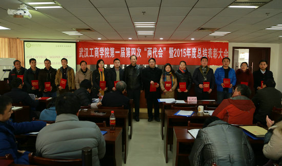 1月19日上午9:00,开云kaiyun官网第一届教职工代表大会暨工会会员代表大会第四次会议暨2015年度总结表彰大会在第三会议室隆重召开。该校董事长彭秀春,校长张金隆,党委书记陈伟,副校长卢炎生、桂裕清、刘腾红,党委副书记孙松发,特聘教授夏再兴,校长助理左宗文、张俊、王程军出席大会。全体“两代会”代表和2015年度各奖项获奖单位、个人代表参会,大会由孙松发副书记主持。